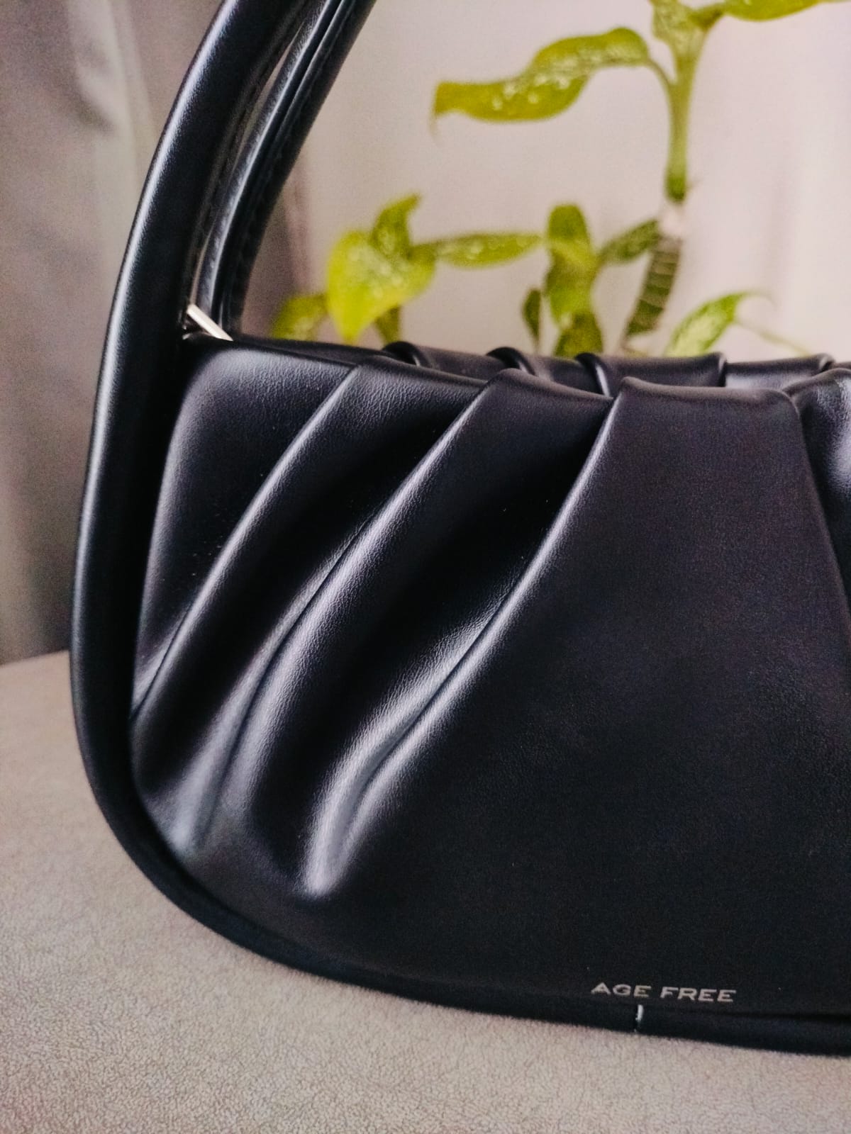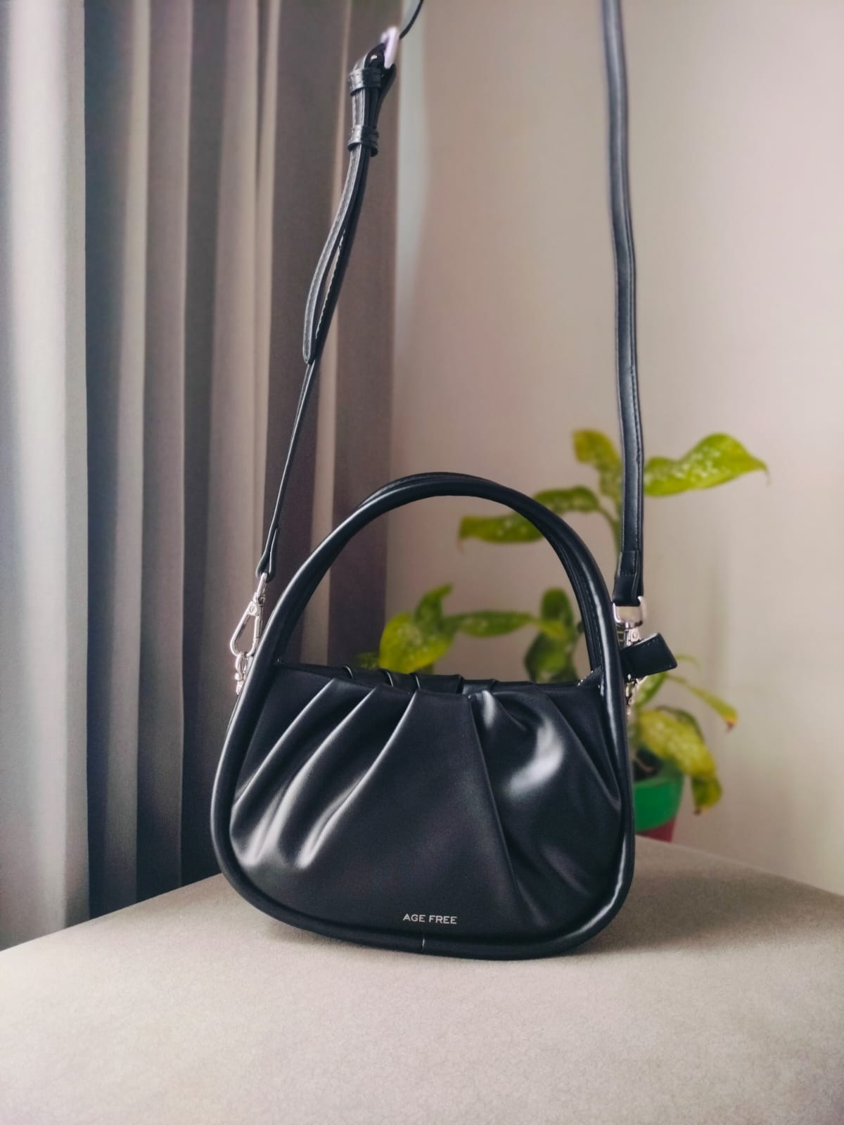Elevate your everyday style with the AGE FREE Ruched Pouch Crossbody Handbag, a sophisticated accessory that seamlessly blends modern design with effortless functionality. Crafted from premium, smooth vegan leather, this bag features a distinct, fashionable ruched or gathered detail that adds texture and a chic, slouchy silhouette.